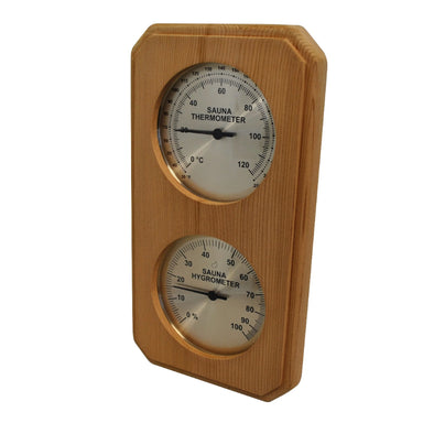 Sauna Thermometer and Hygrometer This hand crafted wooden sauna thermometer & Hygrometer is manufactured by Northern Lights Cedar ...